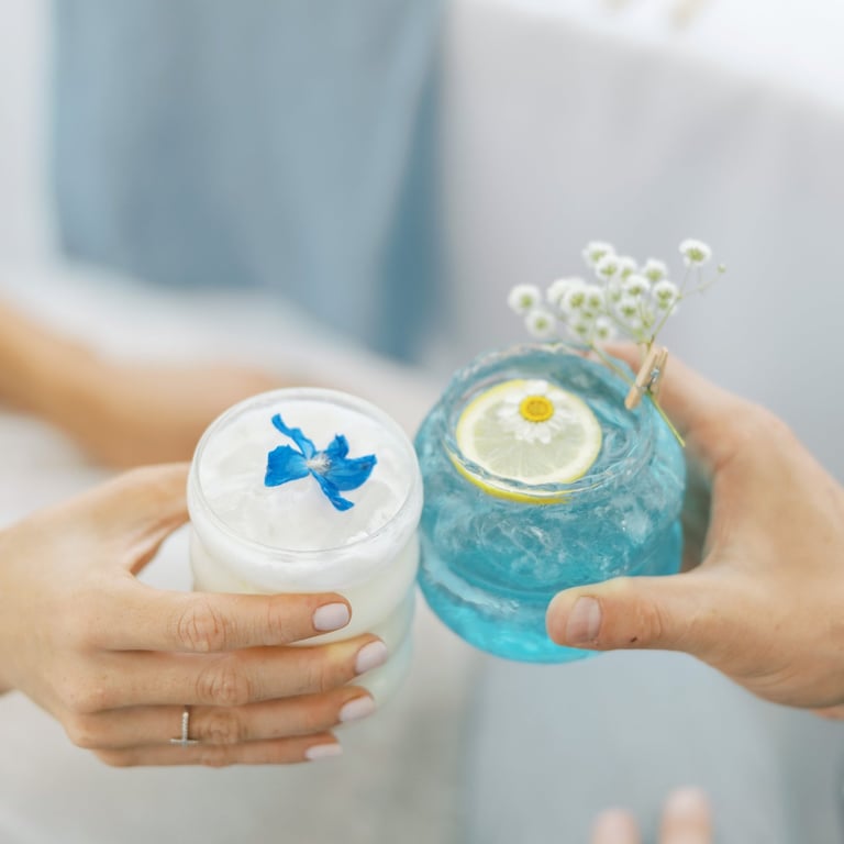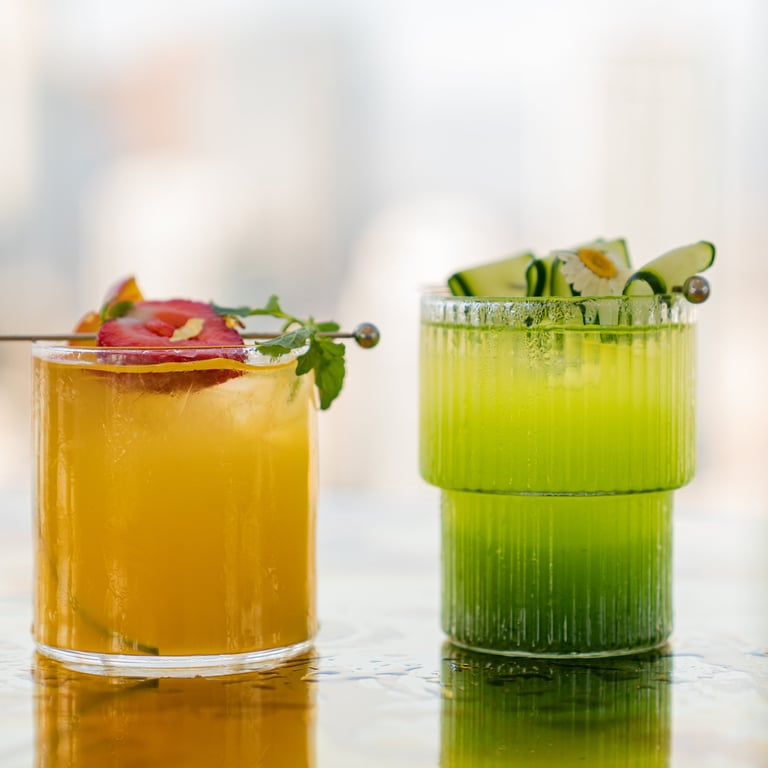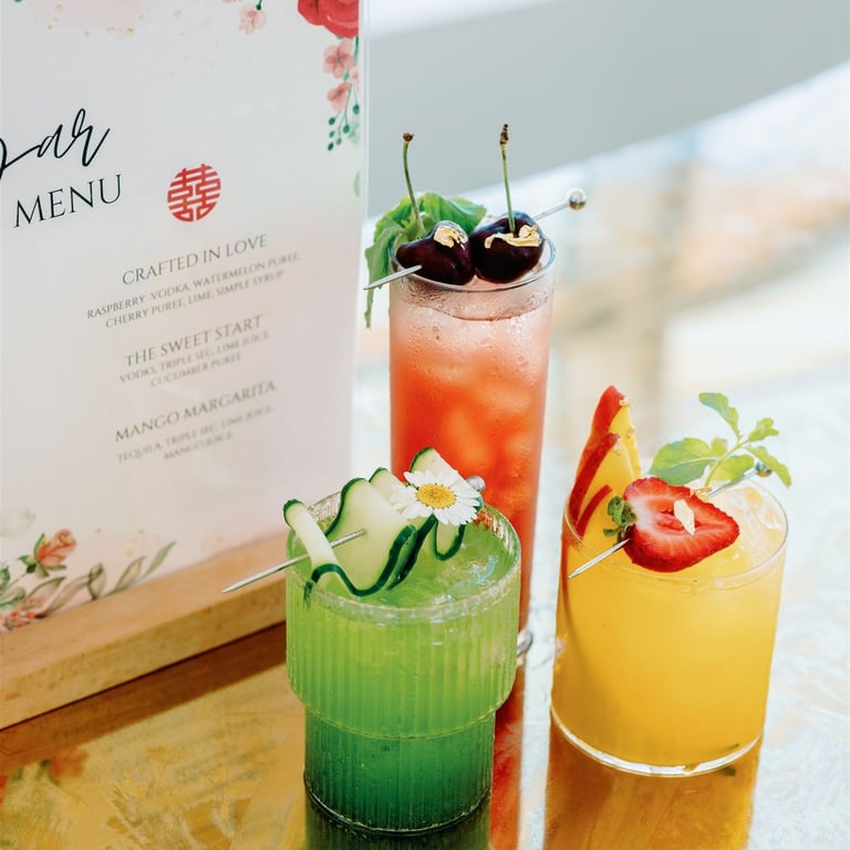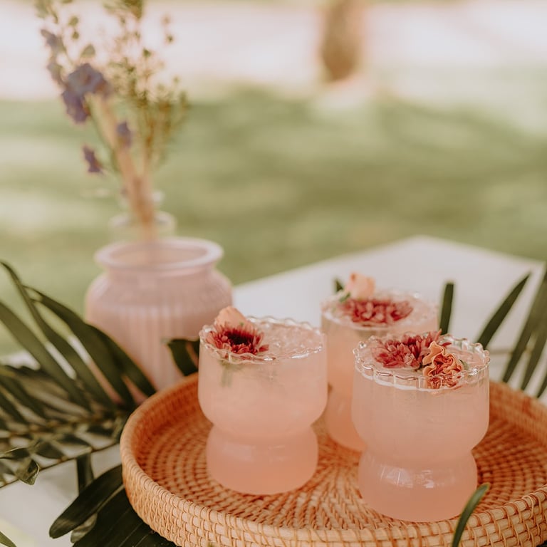 We want to see your vision like you do, and build on it to make it over the top. With full service, we supply everything- Stylish cups, straws, homemade syrups & purees, fruit and floral garnishments, etc, & detailed, custom additions to make your experience unique.
